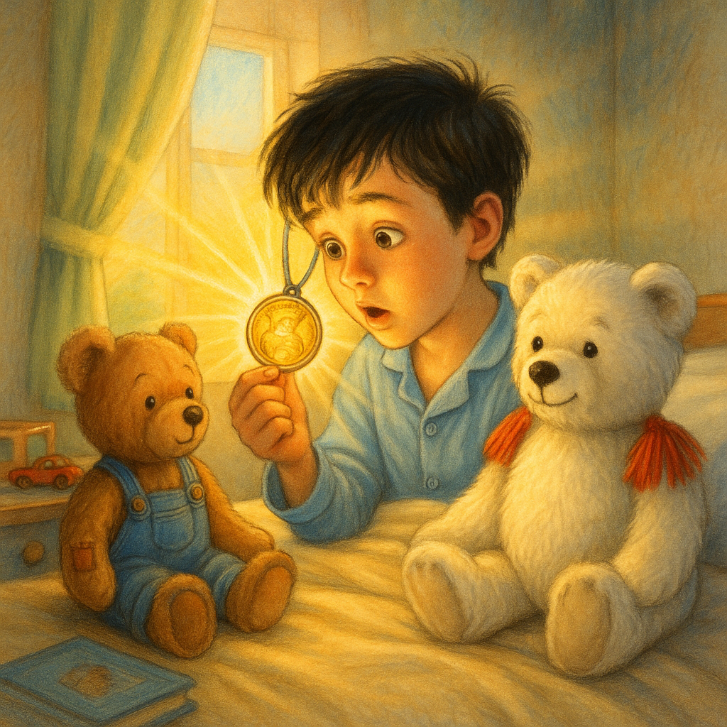 Er rieb sich die Augen, gähnte – und sah die Medaille über sich funkeln.